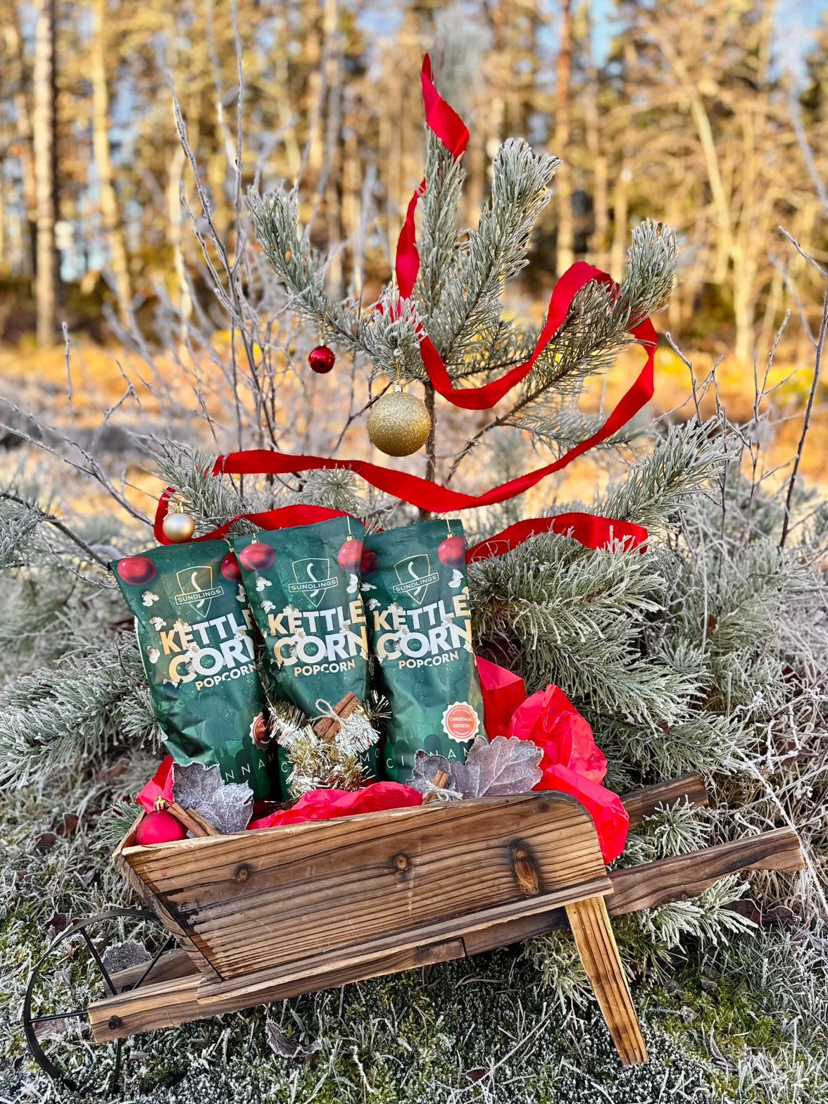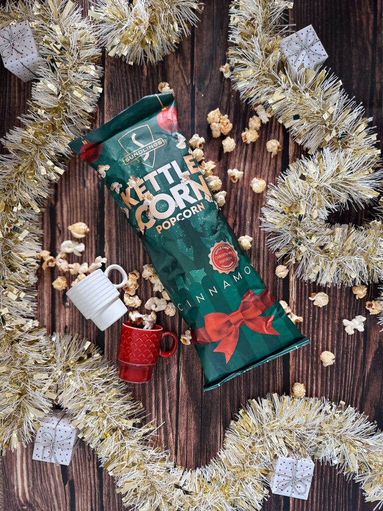 Introducing Kettle Corn Popcorn – Christmas Edition! Salty popcorn meets sweetness and cinnamon.
